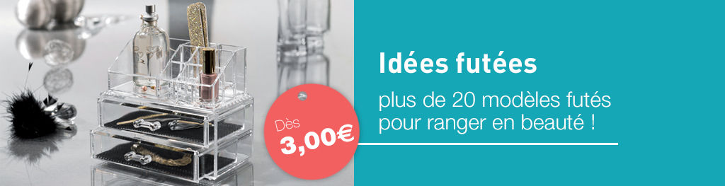 Le maquillage, c’est une foule de petits objets et accessoires sans fin... Compactor conçoit des solutions de rangements cosmétiques qui facilitent la vie : rangement spécial rouge-à-lèvres, coffret maquillage & bijoux, distributeurs de cotons, organisateurs de brosses & pinceaux, bar à vernis, boîte à miroir, rangement pour coton-tige… Ces accessoires de rangement peuvent être transparents, noirs intense ou muraux (pratique quand on a plus de place sur la commode !). Vous n’avez plus qu’à choisir le modèle qui vous correspond vraiment.